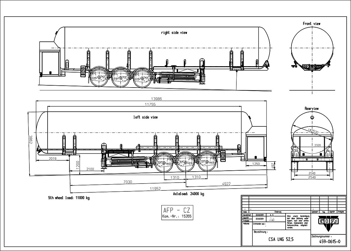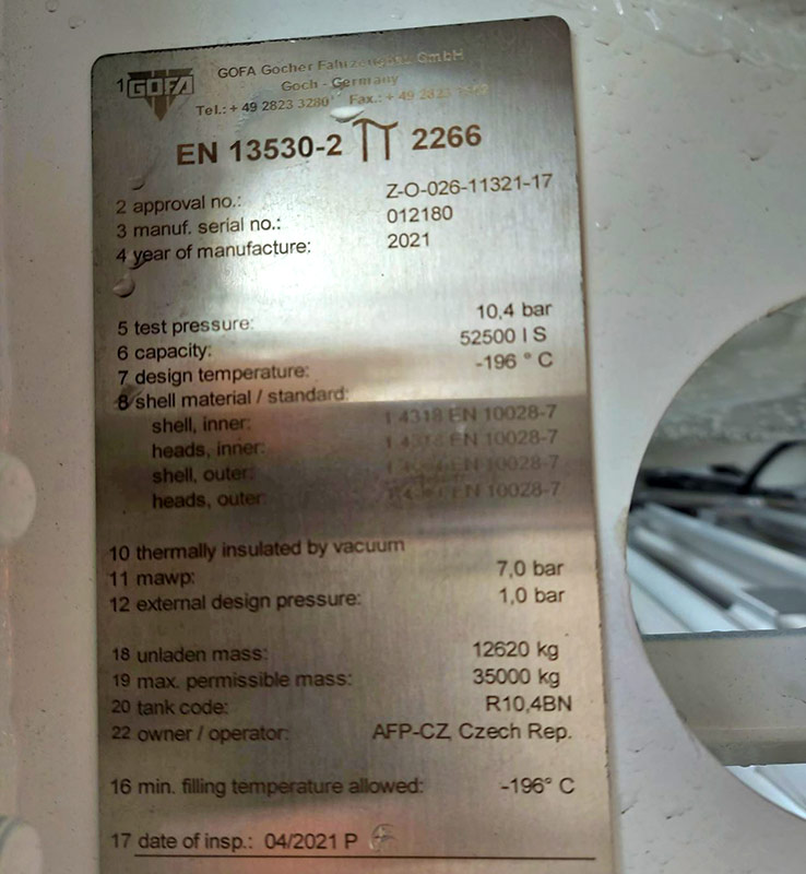 Využijte naši novou cisternu GOFA CSA 52,5 vybavenou měřením FLOWCOM 3000 s malou tiskárnou. Kapacita cisterny je max. 28 000 m³ LNG, tj. cca 20 tun.